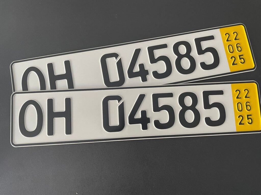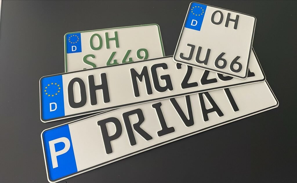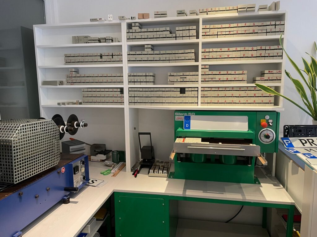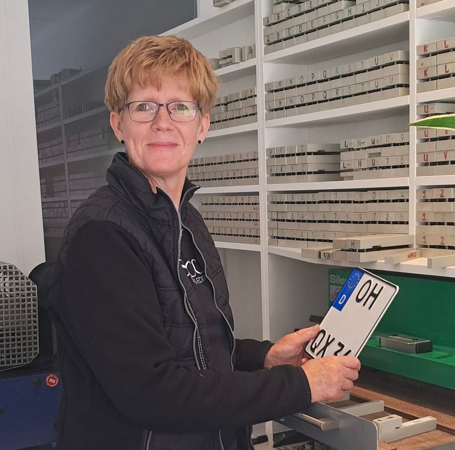 - Neue Kennzeichenschilder prägen wir im Büro in der Fischerstraße für Sie